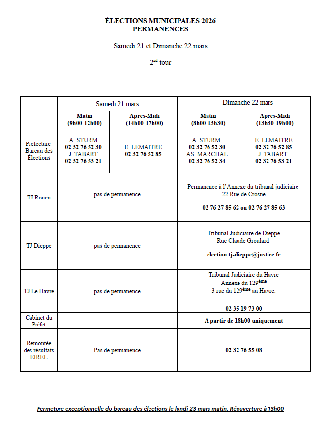 PERMANENCE ELECTIONS 21 et 22 mars 2026
